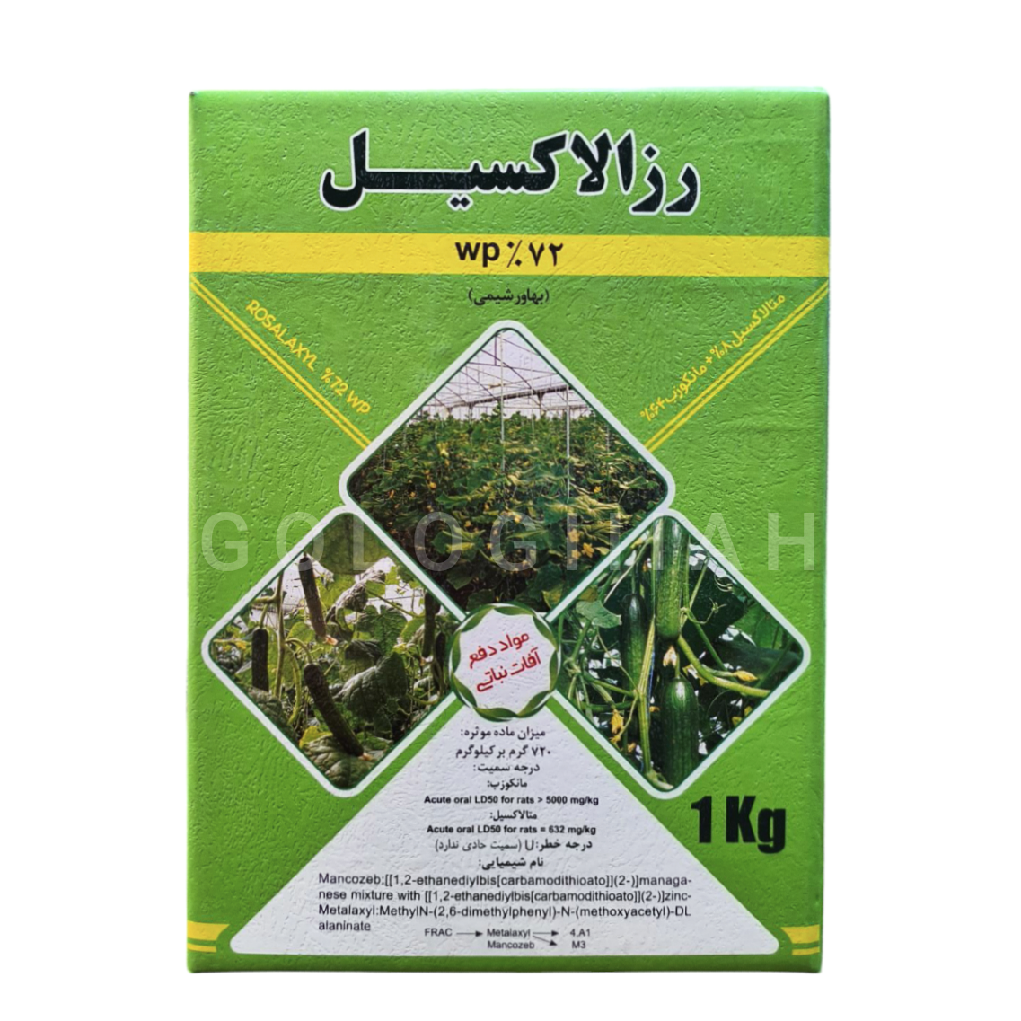 رزالاکسیل 1000 گرمی WP ۷۲٪ (Rosalaxyl WP 72%)، محصول برند بهار شیمی، فرمولاسیون پودری (WP) حاوی ۶۴٪ مانکوزب و ۸٪ متالاکسیل است. این قارچ‌کش سیستمیک-تماسی، برای پیشگیری و کنترل گسترده بیماری‌های قارچی خاک‌زاد و برگ‌زاد گیاهان زراعی و گلخانه‌ای طراحی شده است.