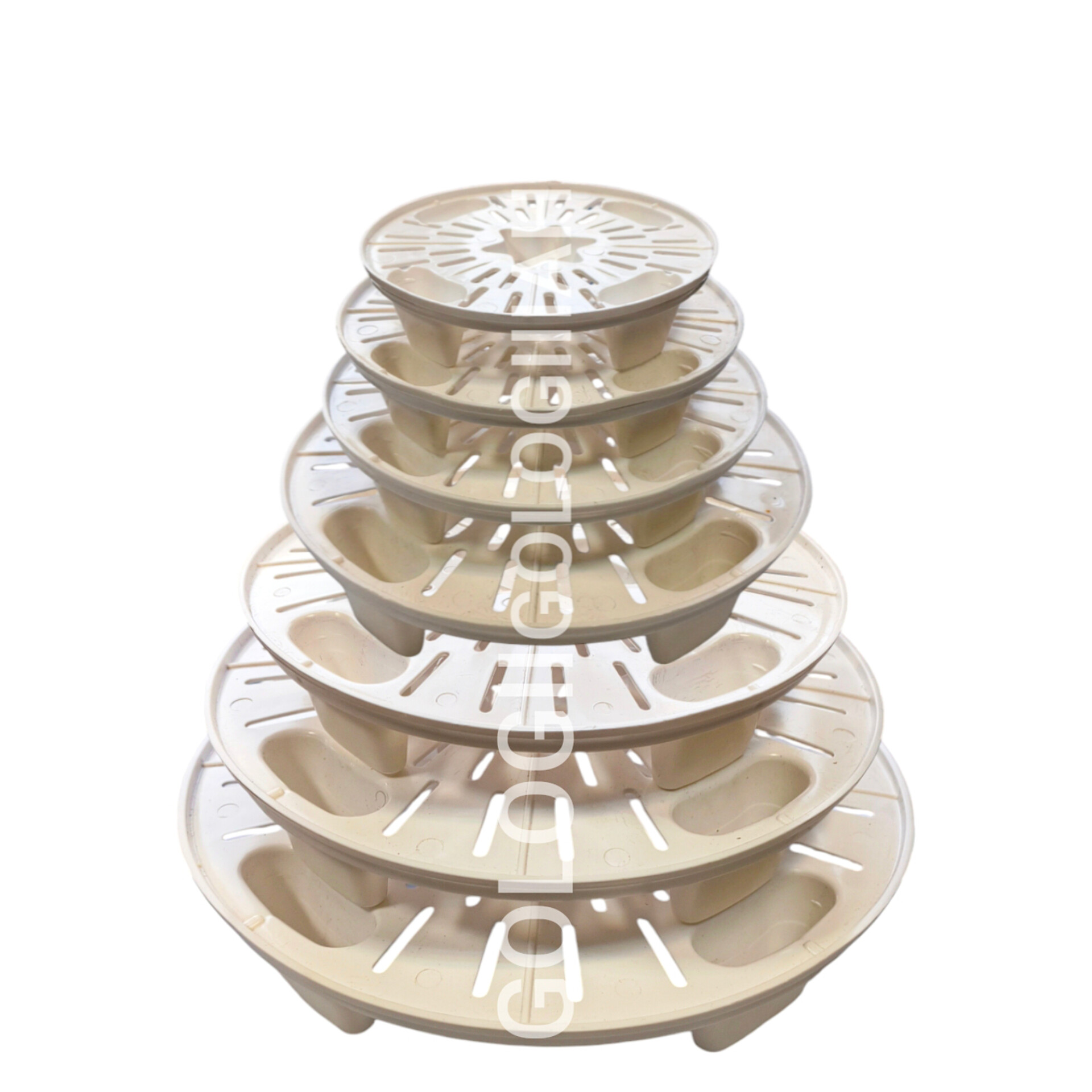 پک چندتایی صفحات پلاستیکی پایهدار گلدان، مجموعهای کاربردی از چند سایز مختلف برای انواع گلدانهای آپارتمانی و باغی است. این پک برای ایجاد «جزیره» در گلدان طراحی شده تا با فاصله دادن گلدان از زیرگلدانی، از تجمع آب و بیماریهای قارچی جلوگیری کند.